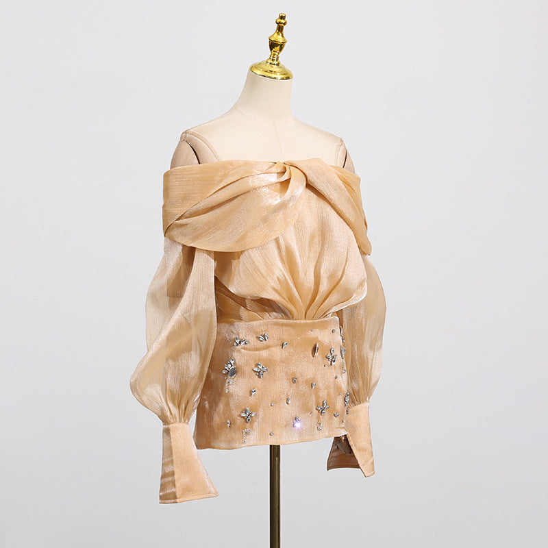 Gentle Temperament Intellectual Style Heavy Embroidery Diamond Sexy One-Shoulder Bow Short Dress